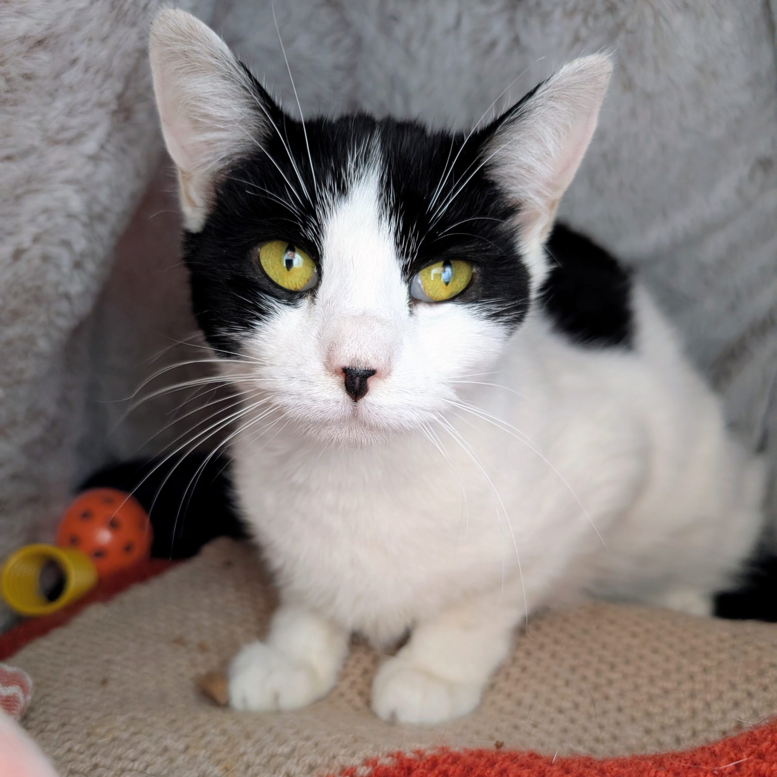 By living in isolation, this poor little girl is understandably frightened and scared at the world. She has now been neutered and placed in our quiet unit to enable her to relax and decompress. What Ruby needs is a quiet home, with a kind, patient person who will help her adjust to ‘normal cat life’. She is currently taking refuge in her little igloo, she feels safe in there. She is eating quite well and she doesn’t have a malicious bone in her body. She is starting to enjoy a gentle ear tickle and we feel she will flourish further in a quiet home with no children, where she can enjoy one to one attention, whilst being given time and space to adjust. She may do well with another quiet, shy, gentle cat.