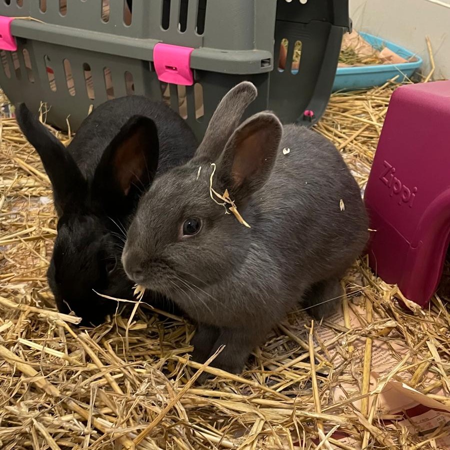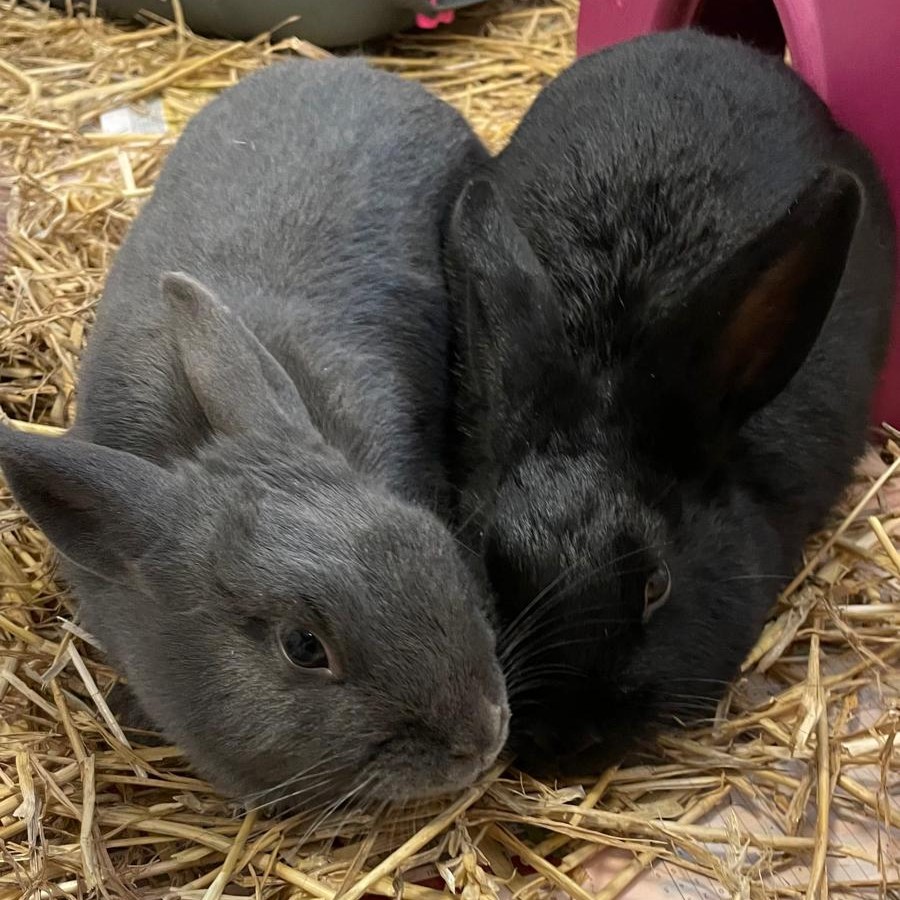 Sally (Grey) and Love (Black) are two sweet young sisters looking for their forever home. They love to spend their time together and are very inquisitive. Often climbing high to get a good look at what the other rabbits are up to on-site.